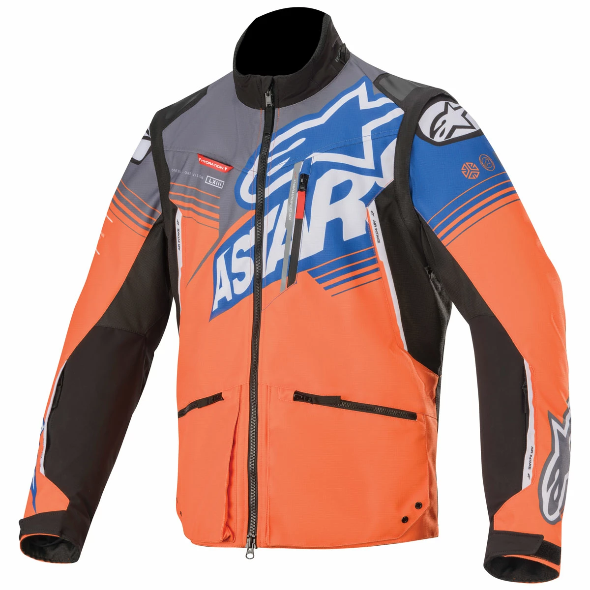 • Zippered air intake and exhaust vents are strategically positioned for optimized airflow that can be controlled according to rider’s needs