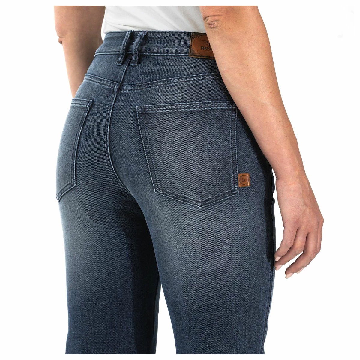 The “tech” is an ultra-high-molecular-weight polyethylene (UHMWPE), a material with fibers twice the strength of steel. Indigo-dyed cotton is woven around the UHMWPE core threads to achieve a denim fabric that looks just like regular denim, but packs serious abrasion resistance at its core. Add in the protection of D3O Ghost knee and hip impact armor and the RokkerTech Mid Waisted Straight Women’s Jeans are not just the whole package – they have made the whole package lighter.